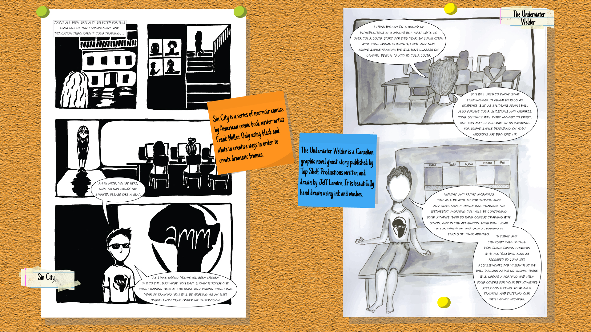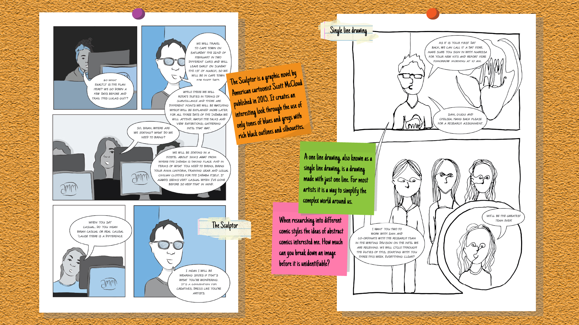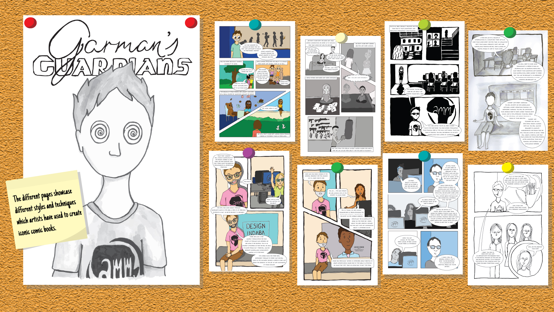 This is an original comic concept which showcases a new style of drawing with each page. I was the sole person involved in this project and used my fourth-year classmates as inspiration for the different characters, centring the story on a class trip we did in February 2020. The different pages showcase different styles and techniques which artists have used to create iconic comic books. Each page was drawn some by hand, some digitally, but each page was inspired by different styles. Each style was researched, ensuring a diverse range of pages, and then practiced allowing for my own touch to be incorporated into the style as well. This was intended to show how there are many different ways of viewing comic art and not just what is seen by media giants like Marvel and DC.